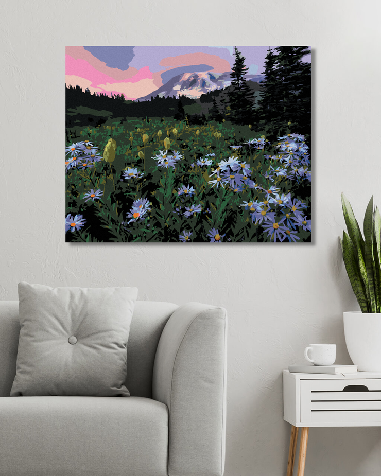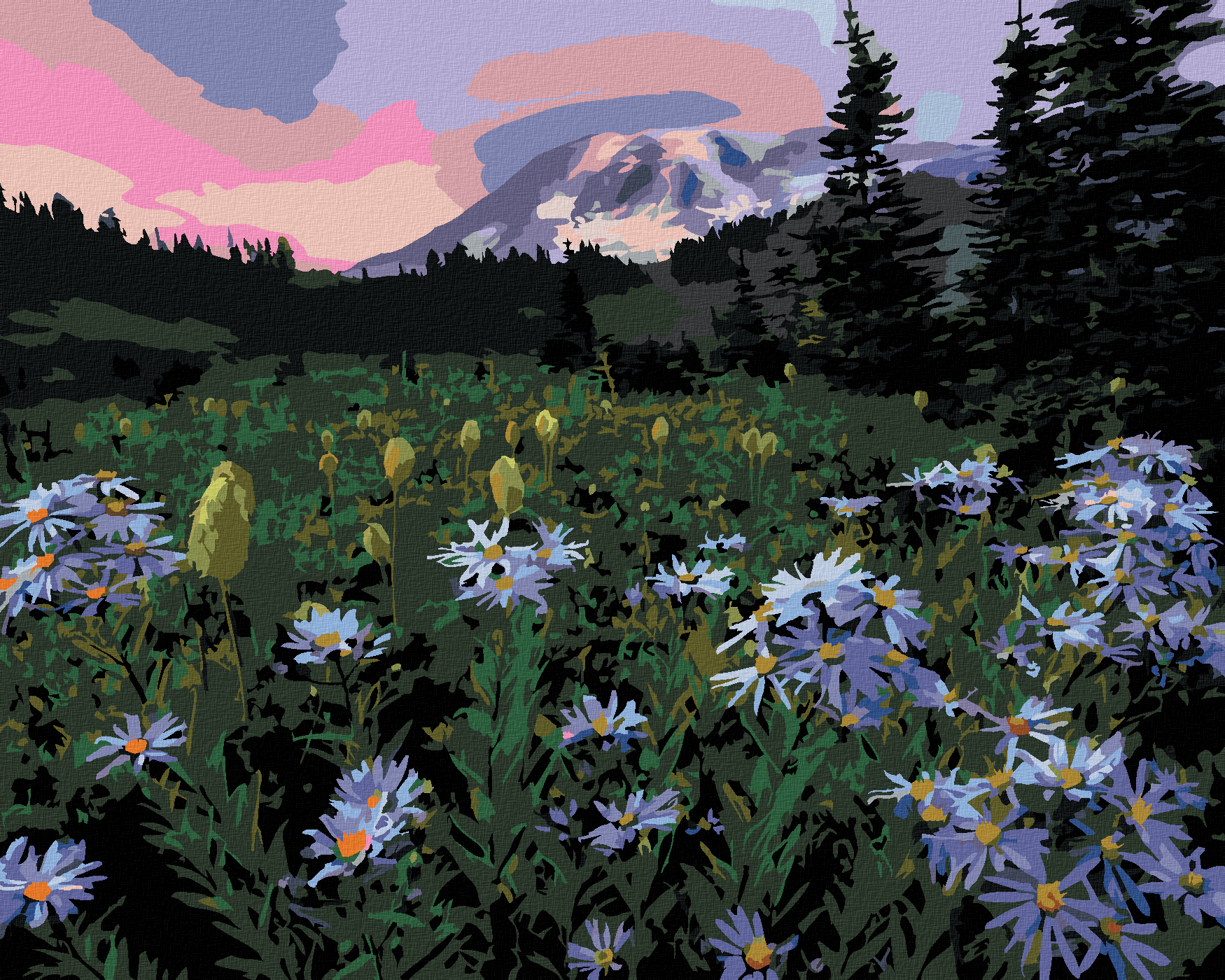 Diamond painting - LILA BLUMEN AM FUSS EINES BERGES (DENNIS FRATES)